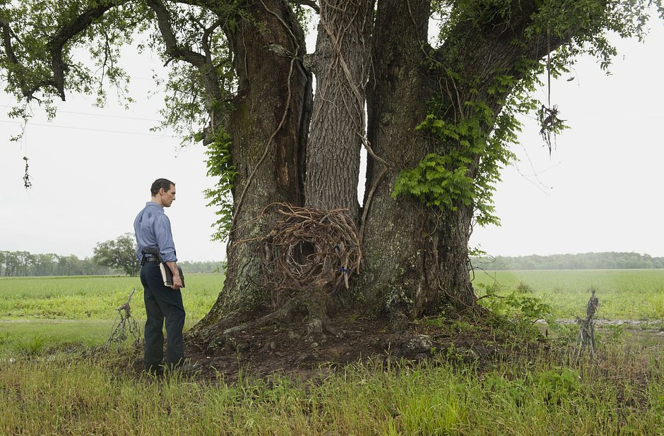 Сериал очень красиво снят, особенно цепляют некоторые сцены, снятые одним дублем, в которых происходят крутой экшен. Операторская работа заслуживает уважения, некоторые кадры можно скринить и ставить на заставку. Режиссер Кэри Фукунага снял все 8 эпизодов, и это видно - стиль единый, атмосферный. Болота Луизианы, заброшенные заводы, ночные дороги - все выглядит мрачно и реалистично. Та знаменитая погоня в 6-й серии, снятая одним планом на 6 минут, - это шедевр. Саундтрек от T Bone Burnett с песнями вроде "Far from Any Road" усиливает настроение. Визуалы как в кино, не сериал. На Rotten Tomatoes 97% от критиков, и это заслужено.